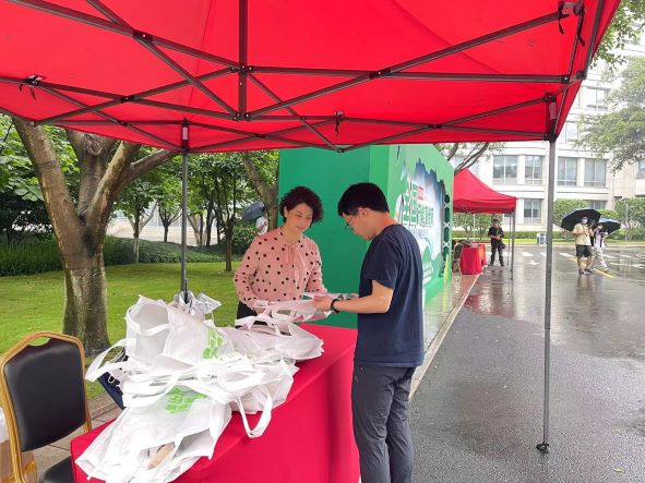 伴隨著蒙蒙細(xì)雨的早晨,在溫州銀泰百貨中心廣場(chǎng)活動(dòng)現(xiàn)場(chǎng)各單位通過展板、橫幅、宣傳冊(cè)、掃碼答題等方式向廣大居民群眾傳播節(jié)能降碳和綠色發(fā)展理念,倡導(dǎo)綠色低碳生活方式,引導(dǎo)廣大市民養(yǎng)成綠色低碳生活方式。工業(yè)院組織10名志愿者在場(chǎng)向市民普及節(jié)能小常識(shí),幫助市民解答節(jié)能方面的日常問題。上午11點(diǎn),工業(yè)院一部分志愿者又馬不停蹄的趕往位于溫州市人民政府大院內(nèi)的節(jié)能宣傳活動(dòng)場(chǎng),在機(jī)關(guān)大院內(nèi)又掀起一股節(jié)能宣傳的熱潮。
